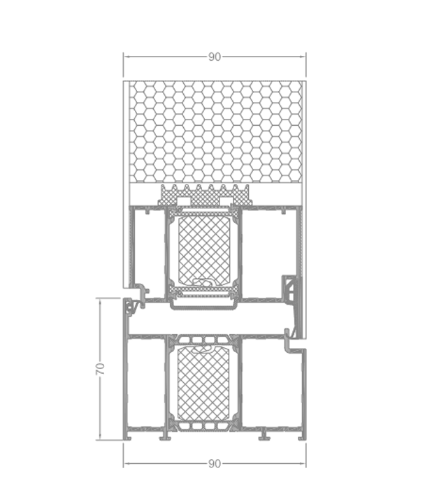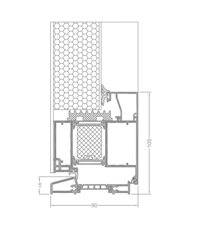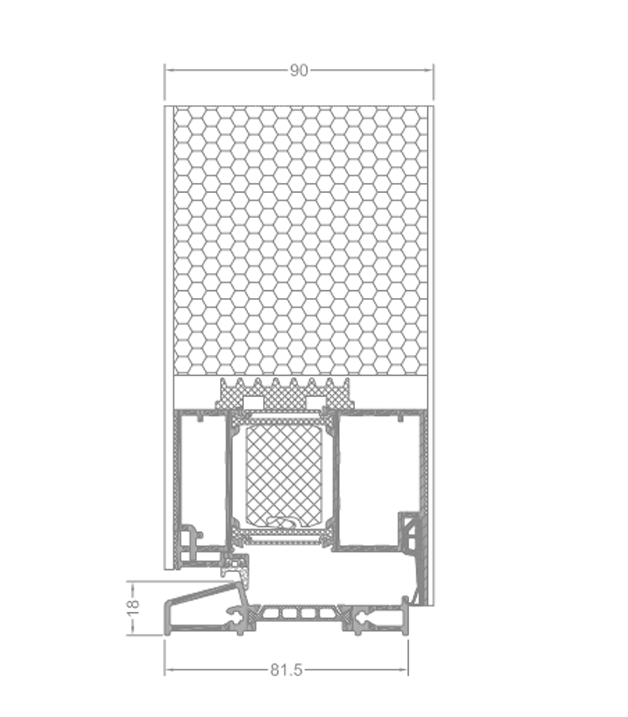 System aluminiowy o doskonałej izolacji termicznej, idealnie nadający się do projektowania drzwi panelowych jednoskrzydłowych. Umożliwia otwieranie drzwi zarówno do wewnątrz, jak i na zewnątrz. Skrzydło jest przystosowane do montażu panelu klejonego zarówno jedno-, jak i dwustronnie.