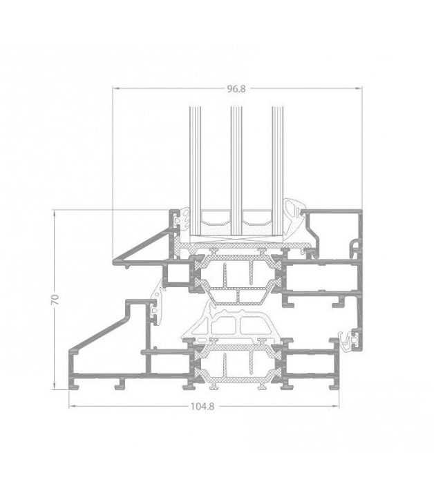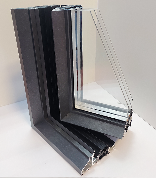 Minimalna widoczna na zewnątrz szerokość okna otwieranego do wewnątrz to 35 mm dla ościeżnicy i 35 mm dla skrzydła.