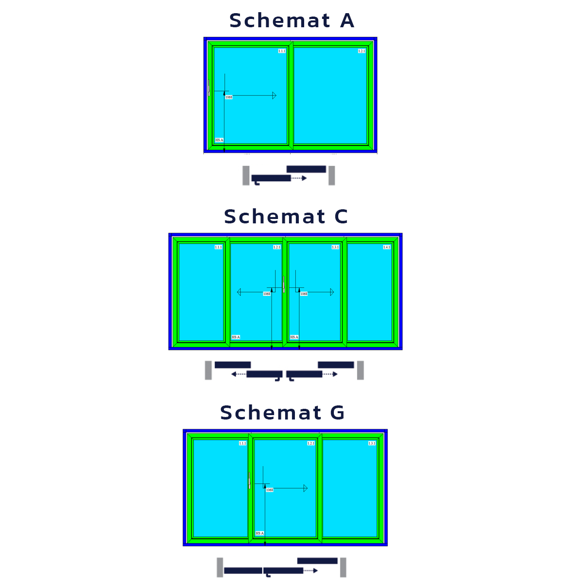 • różne warianty układów skrzydeł oraz części nieotwieranych