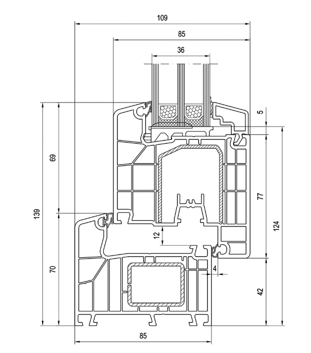 • rama 5 lub 6-komorowa w zależności od profilu