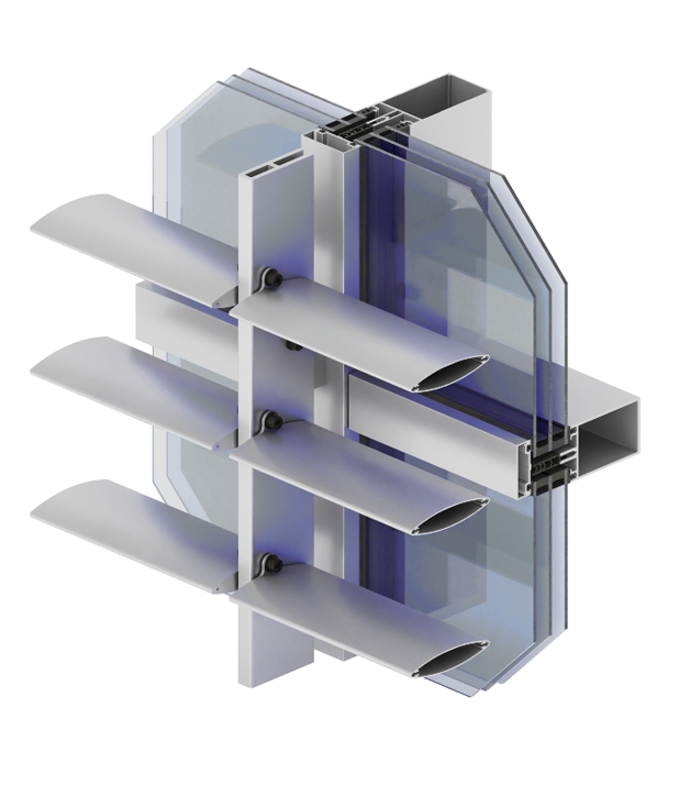Sun Protection to system fasadowych, aluminiowych osłon przeciwsłonecznych do zastosowania na elewacjach, na ścianach słupowo–ryglowych, regulujących dopływ światła do wnętrz i zapewniających wyższą wydajność energetyczną budynku.