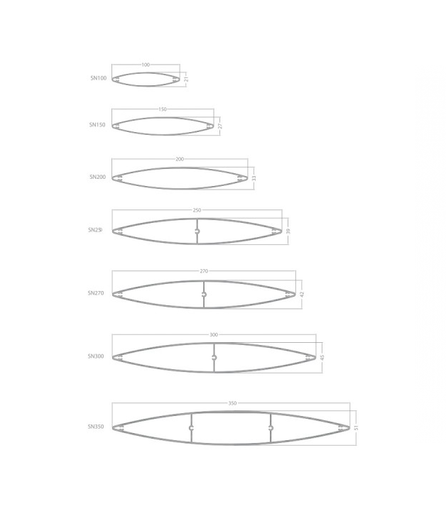 - o przekroju eliptycznym (o wymiarach 100, 150, 200, 250, 270, 300, 350)